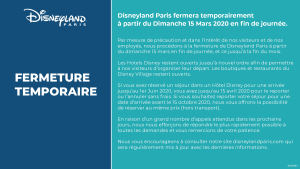 Dans un nouveau communiqué du 30 mars, Disneyland Paris annonce sa fermeture jusqu’à nouvel ordre.