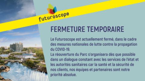 Un premier communiqué officiel le 14 mars, mis à jour le 16 mars, annonce que suite aux dernières décisions nationales, le Futuroscope sera fermé jusqu’au mercredi 15 avril inclus, dans le cadre de la lutte contre la propagation du COVID-19.