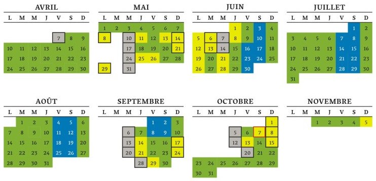 Le calendrier 2026 vous permet de visualiser l’intégralité des dates où vous pouvez dormir sur place.