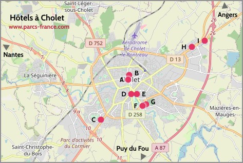 Au nord du Puy du Fou, à moins de 30 minutes, Cholet pourrait être votre ville étape avec une offre hôtelière de 9 établissements classés de 2 à 4 étoiles.
