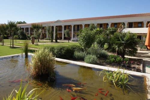 Dans l’ambiance reconstituée de la Rome Antique, la Villa s’articule en rectangle autour d’un vaste patio de plus de 3000 m². Ce jardin méditerranéen luxuriant avec ses bassins de carpes est bordé par les colonnes corinthiennes et les façades ocres de la villa sur deux niveaux. A noter que les 100 chambres, classées 3 étoiles, ont été rénovées en 2021.