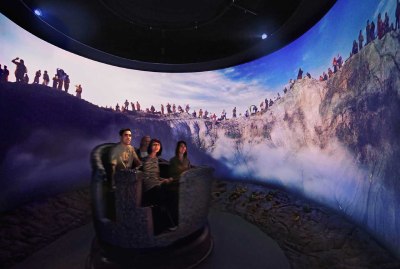 – Premier envol : à bord de nacelles dynamiques, accompagnez le vol d’un aigle royal sur un écran à 180 degrés et survolez les volcans d’Auvergne.